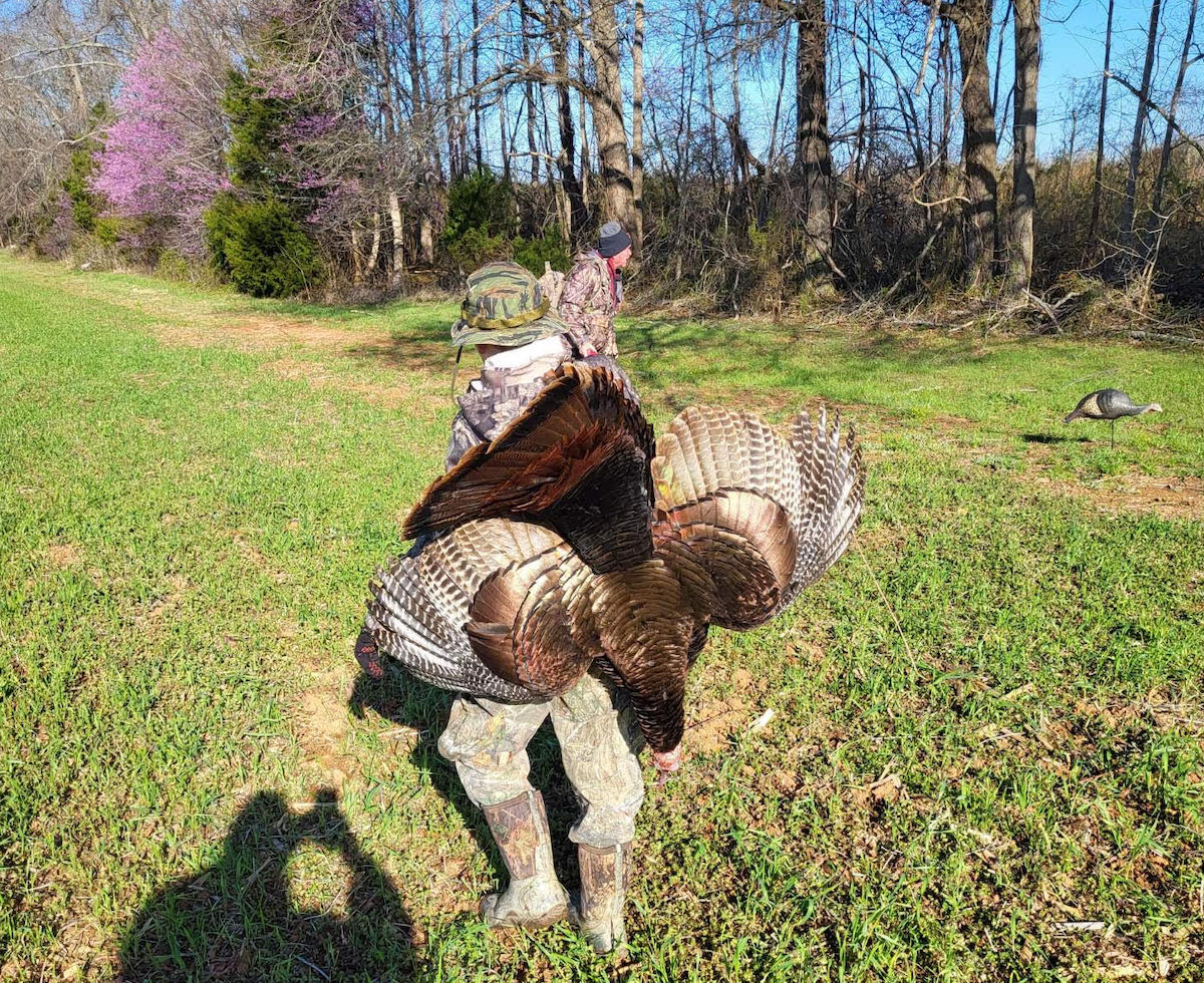 Isinulat ng Opisyal ng DWR Conservation Police K9 na si Ian Ostlund: “Dinala ko ang aking 14-taong-gulang na anak na lalaki, si Grant, sa kanyang unang youth turkey hunt malapit sa aming tahanan sa Rockingham County. Hindi pa kami nakakita o nakarinig ng manloloko bago sa ari-arian na aming pangangaso, ngunit nakita namin ang paminsan-minsang inahing manok. Sa unang liwanag, pareho kaming nabigla nang makarinig kami ng halos agarang mga lamon bilang tugon sa aming mga tawag sa uwak. Matapos i-set up ang aming mga decoy at kunin ang aming posisyon sa base ng isang malaking oak, ang mga gobbler ay patuloy na tumugon sa aming mga kaakit-akit na tawag ng manok, ngunit tila nagtatrabaho nang mas malayo sa amin, at kalaunan ay tumigil sa paglalamon nang buo. Napagpasyahan naming baguhin ang aming lokasyon sa isang terrain-funnel sa ibang lugar sa property kung saan kami ay maprotektahan mula sa pagbugso ng hangin.