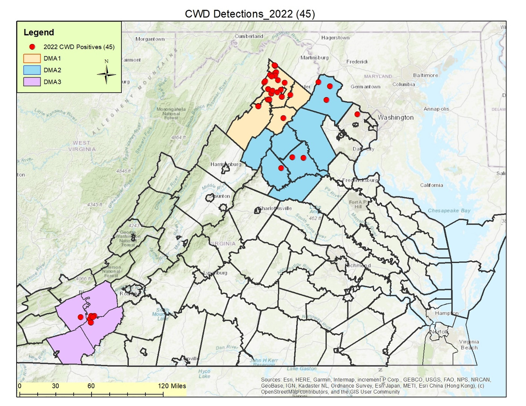 Disease Management Area (DMA) 1 (Clarke, Frederick, Shenandoah, at Warren county)