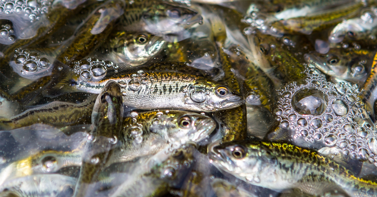 F1 mga fingerling ng largemouth bass.