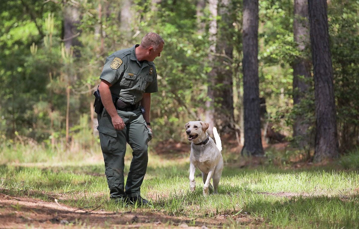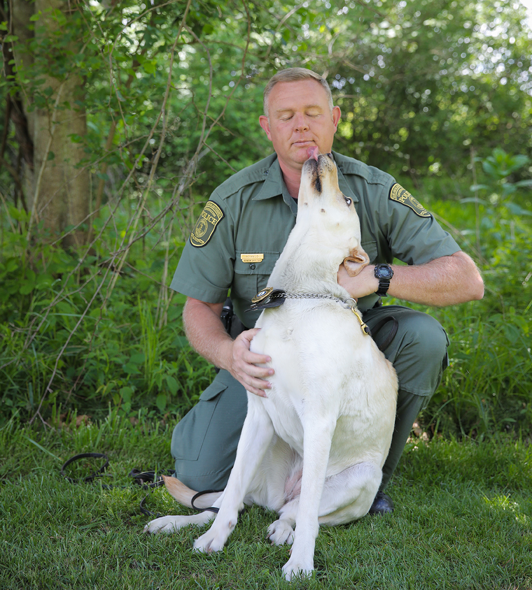 Ang DWR Conservation Police at Master CPO na si Richard Howald ay nag-bid ng malungkot na paalam sa K9 Scout noong Agosto 17. Ang dilaw na Labrador retriever ay 13 taong gulang at naging bahagi ng tatlong asong K9 na koponan na nagsimula sa kasalukuyang programa ng opisyal ng K9 ng DWR noong 2011.