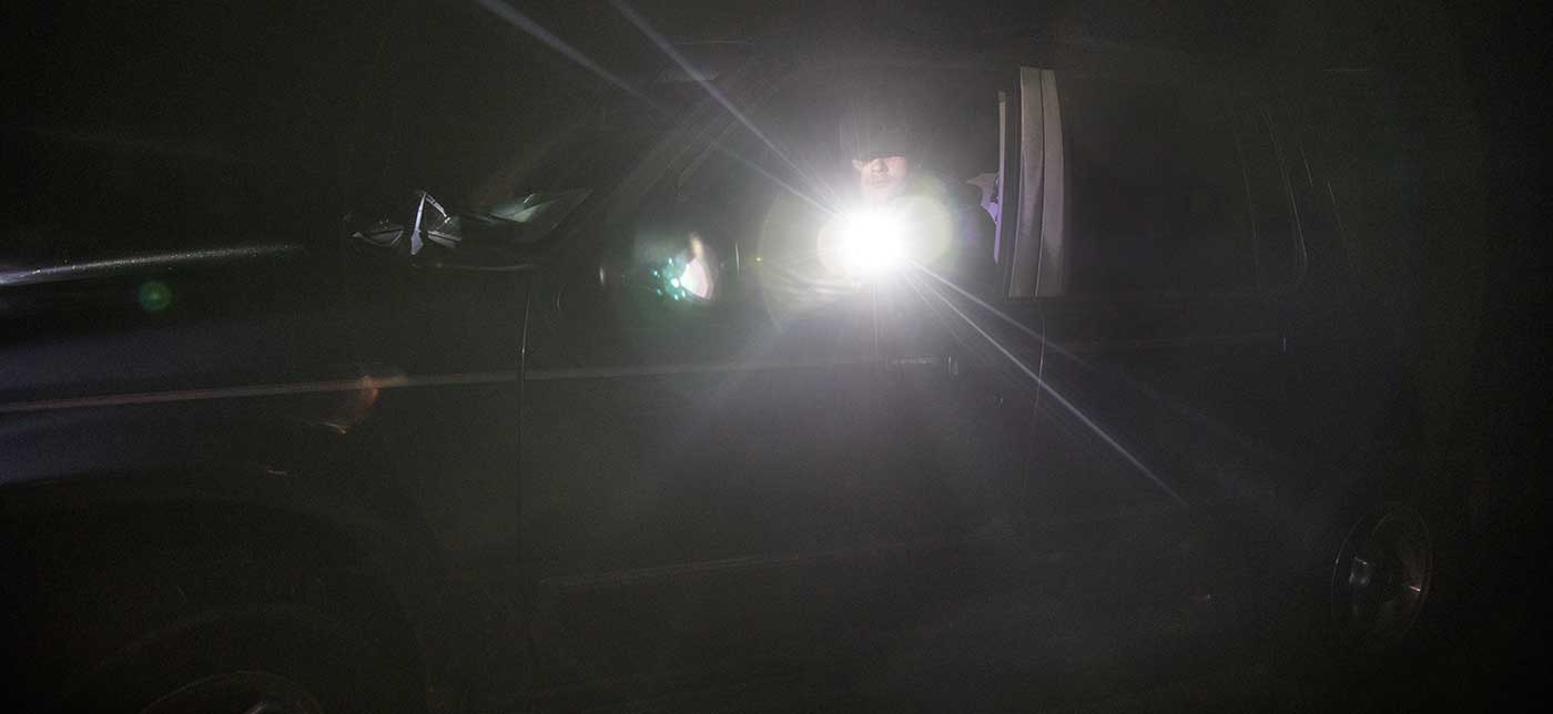 Nagsimula ang lahat nang mapansin ni Officer Billhimer, na wala sa tungkulin, ang isang kotseng dahan-dahang nagmamaneho ng isang kilalang usa na tumatawid malapit sa kanyang tahanan na nagliliwanag ng handheld na ilaw mula sa isang bintana. Ito ay isang lugar na ginawa niya ng maraming mga kaso ng pag-spotlight sa mga nakaraang taon. Nang makita ang iligal na spotlight, kinuha ni Billhimer ang kanyang duty belt at sinundan ang sasakyan patungo sa isang kalapit na bahay. Sa pagsuri sa pagpaparehistro ng sasakyan, ang mga tag ay hindi tumugma sa kotse.