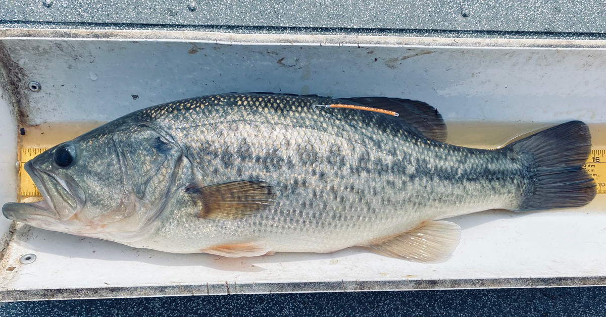 Isang naka-tag na largemouth bass. Larawan sa kagandahang-loob ng Maryland Department of Natural Resources