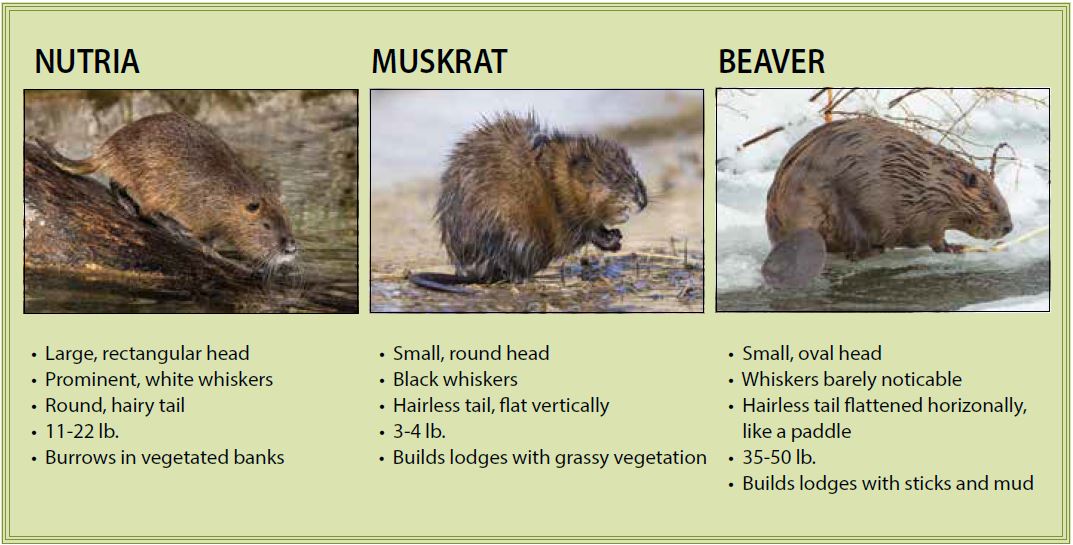 Ang Nutria ay malaki, invasive, semiaquatic rodent. Nababalutan ng balahibo, buntot ng daga, at web-footed, ang mga ito ay katulad sa hitsura ng katutubong muskrat, bagama't mas malaki at mas mapanira. Sa kanilang malalaking orange, tulad ng mga ngipin ng beaver, kakainin ng nutria ang halos bawat halaman na tumutubo sa isang latian. Kapag naitatag na, sila ay may kakayahang maggapas at maghukay ng bawat magagamit na ektarya ng magagandang wetland landscape, sa gayon ay nagiging mga hubad na patak ng putik na pagkatapos ay naaagnas upang bumukas ang tubig sa paglipas ng panahon.