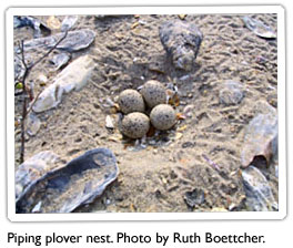 Ang mga piping plovers ay may maraming likas na kaaway gaya ng mga raccoon, fox, uwak, gull at iba pang mga ibon at mammal na gustong kumain ng mga itlog, sisiw at paminsan-minsang adultong ibon. Ang mga bagyo at high tide sa tagsibol ay madalas na naghuhugas ng isang bahagi ng mga pugad at/o nilulunod ang mga sisiw na hindi lumilipad. Ang mga tao na bumibisita sa mga isla ng hadlang sa panahon ng pag-aanak ay maaaring hindi sinasadyang maapektuhan din ang mga plovers. Sa kabutihang palad, marami ang magagawa ng mga tao upang mabawasan ang kaguluhan sa mga ibon na pugad. Nakalista sa ibaba ang ilang simpleng hakbang na dapat gawin kapag bumibisita sa mga isla ng hadlang sa panahon ng pag-aanak (Abril – Setyembre):