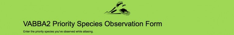 Ang karagdagang data sa mga species na ito ay ilalagay sa isang simpleng bagong database na na-access sa pamamagitan ng VABBA2 web page. Ang tool na ito ay umiiral sa ibang online na sistema, dahil mas gugustuhin naming ang mga data na ito ay HINDI mailagay sa loob ng pampublikong sistema ng eBird. Sa katunayan, aktibong hinihikayat namin ang mga nag-aambag ng Atlas na huwag mag-post ng tumpak na data ng lokasyon ng pag-aanak para sa mga priority species sa pamamagitan ng portal ng eBird. Bagama't umaasa kaming lahat ng mga birder ay gagamit ng naaangkop na pangangalaga kapag nag-birding, hindi rin namin nais na ang mga species na ito ay magkaroon ng labis na stress at kaguluhan, bilang resulta ng proyektong ito.