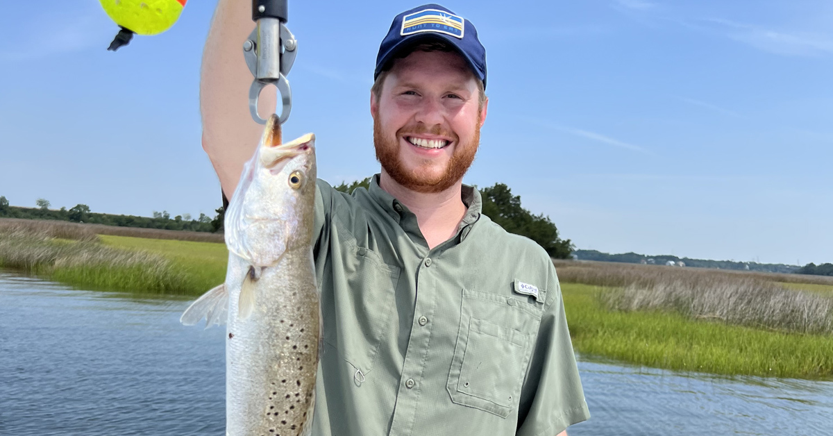 Ang outfitter ay mula sa Charleston, at ito ay tumingin sa akin na siya ay marahil ay maaaring mag-navigate sa tubig sa kanyang pagtulog. Sinabi niya sa akin na target namin ang batik-batik na trout, na labis kong ikinatuwa. Talagang mahal ko ang trout. Gustung-gusto ko ang hindi pakikitungo sa mga kaliskis at gusto ko ang kanilang panlasa, ngunit hindi ko pa nasisiyahan sa isang batik-batik na trout.