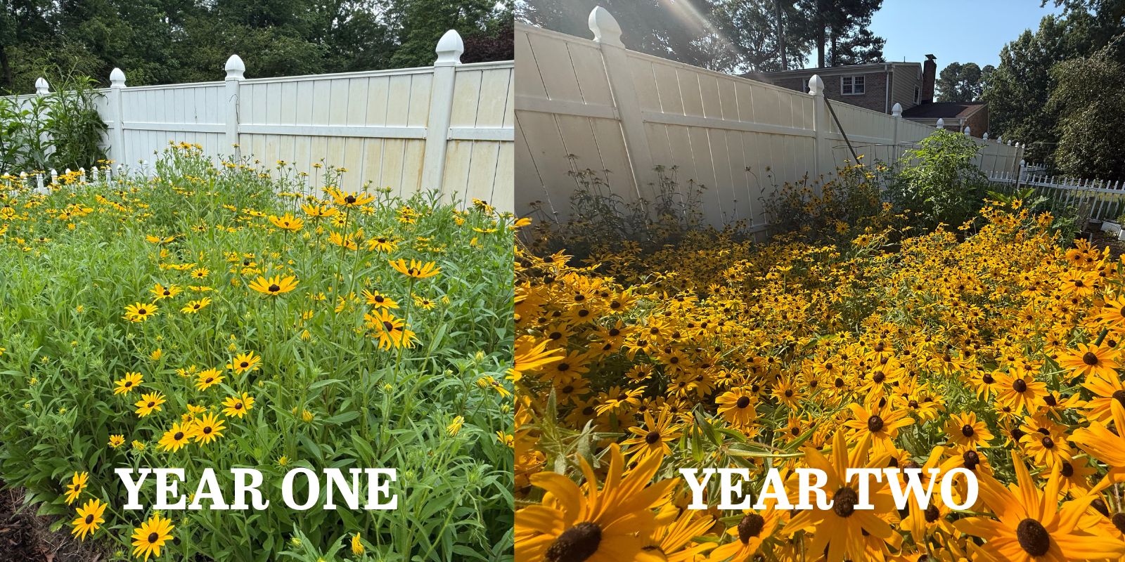 Noong 2023, nasasabik akong magkaroon ng isa sa mga unang seed packet na ginawa, at nakakita ako ng 10- square-foot patch ng turf na maaari kong i-convert. Inihanda ko ito at itinanim sa taglagas. Ngunit, tulad ng ipinapakita ng aking mga resulta, kailangan mong maging matiyaga upang makita ang mga dramatikong resulta! Ang catchphrase para sa lumalaking perennial native wildflowers mula sa buto ay: First year sleep; ikalawang taon gumapang; ikatlong taon na paglukso.