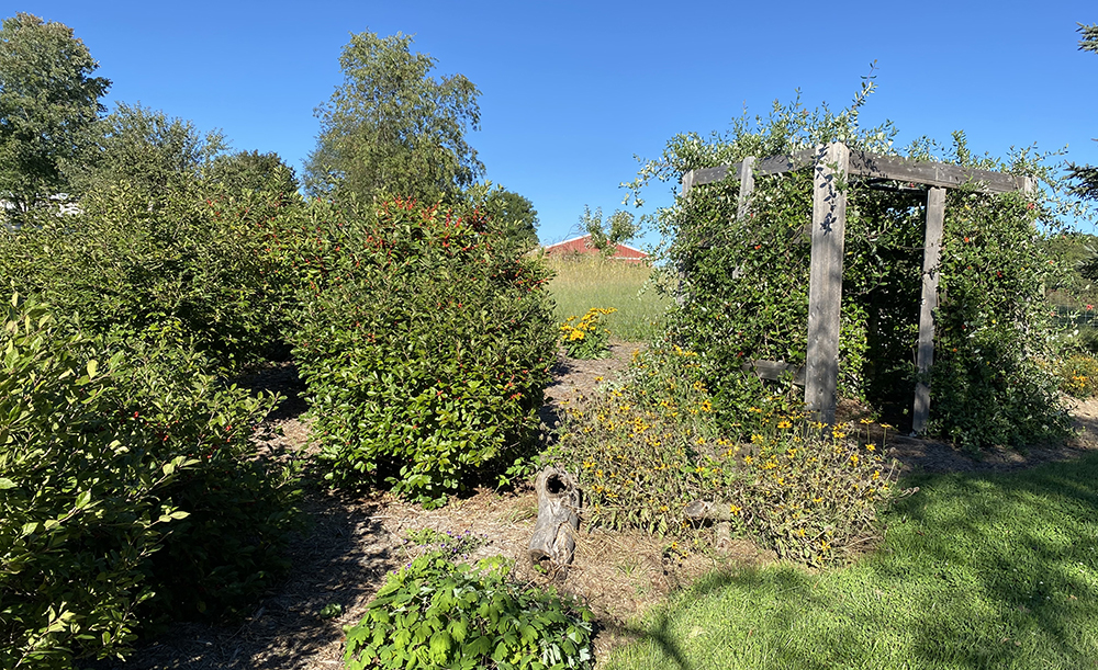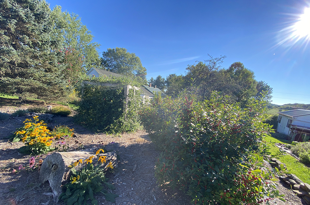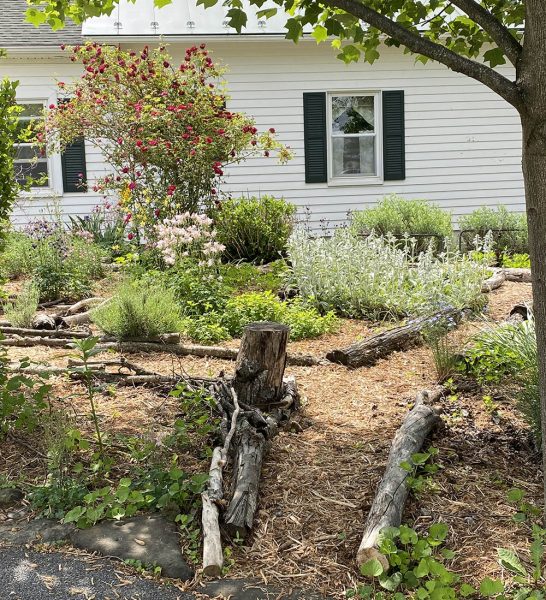 Sa mahigit isang ektaryang lupain lamang na kinatitirikan ng aming bahay, hindi kami maaaring maging malaki. Maaari naming, gayunpaman, gumawa ng isang malaking pagkakaiba. Naghahalaman kami ng mga ibon at pollinator. Ang aming bahay ay napapaligiran ng "natural na katulad" na mga hardin na madalas naming gawin. Ang mga daanan ay napapaligiran ng maliliit na diyametro na log o maging ng malalaking sanga ng puno na aming nakalap, ang ilan ay mula sa aming sariling mga puno. Mabagal silang nabubulok at ang nabubulok na kahoy ay isang magandang lugar para sa mga ibon na makahanap ng mga insekto.