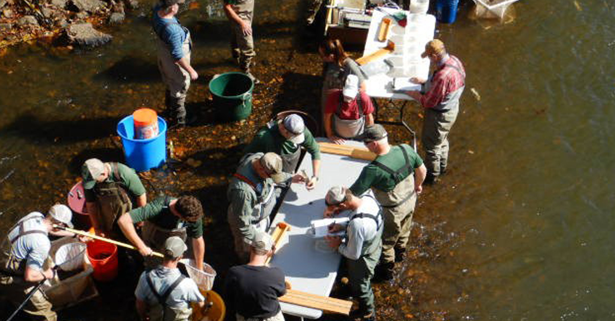 Ang mga kawani ng Virginia Department of Wildlife Resources (DWR), mga miyembro ng Trout Unlimited, at mga boluntaryo ay nagsampol ng limang site sa Smith River noong huling bahagi ng Oktubre gamit ang paraan ng pag-sample ng barge, na nangangailangan ng malaking contingent ng mga biologist at boluntaryo. Ito ang parehong paraan na ginamit ilang taon na ang nakararaan bago ang DWR Region 2 ay nakakuha ng equipment-laden na raft na ginagamit para sa karamihan ng sampling sa Smith. Kaya bakit bumalik ang DWR sa lumang pamamaraan?