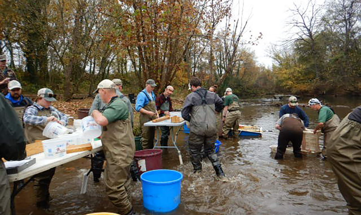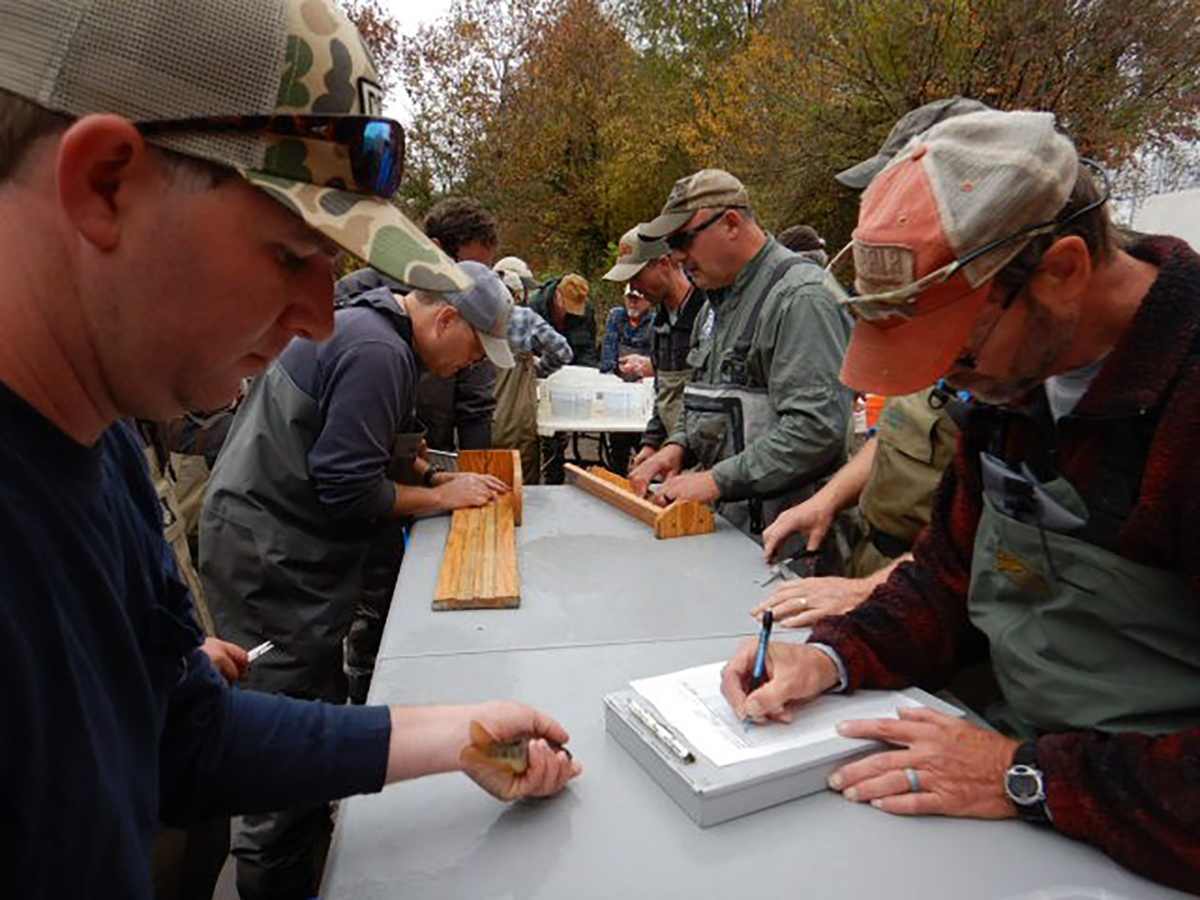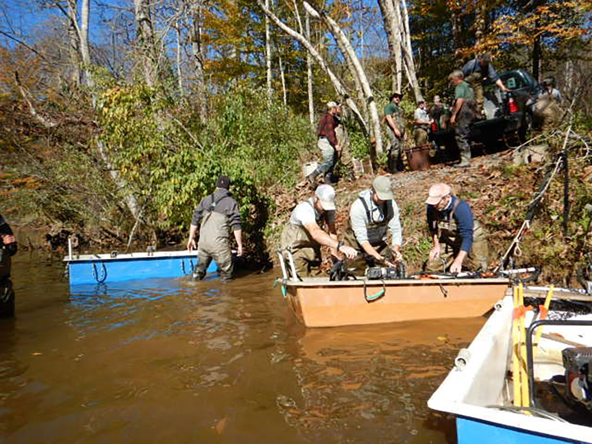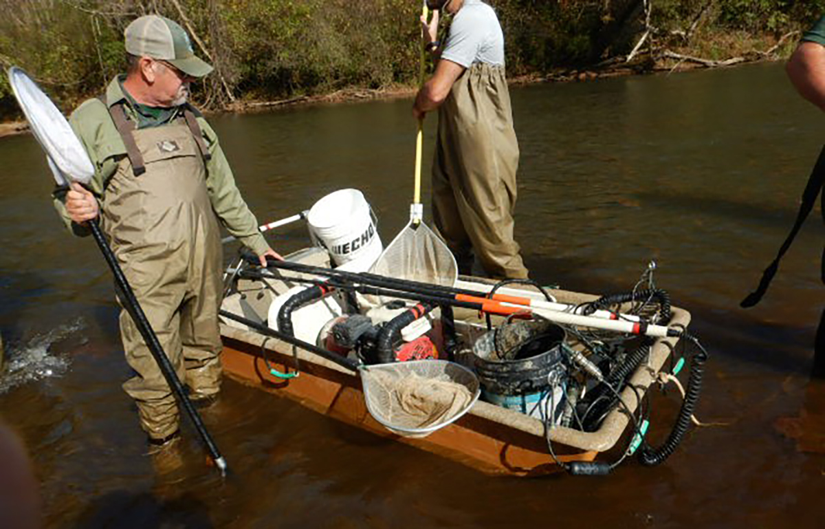 Ang mga kawani ng Virginia Department of Wildlife Resources (DWR), mga miyembro ng Trout Unlimited, at mga boluntaryo ay nagsampol ng limang site sa Smith River noong huling bahagi ng Oktubre gamit ang paraan ng pag-sample ng barge, na nangangailangan ng malaking contingent ng mga biologist at boluntaryo. Ito ang parehong paraan na ginamit ilang taon na ang nakararaan bago ang DWR Region 2 ay nakakuha ng equipment-laden na raft na ginagamit para sa karamihan ng sampling sa Smith. Kaya bakit bumalik ang DWR sa lumang pamamaraan?