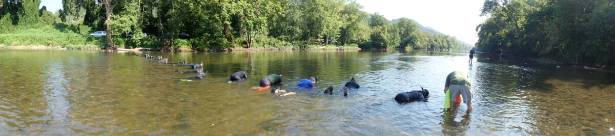 Nagsimula noong 2001, ang mga masinsinang benthic survey na ito ay pinangunahan taun-taon sa mga ilog ng Clinch at Powell ng DWR. Ang impormasyong nakolekta ay ginagamit upang ipaalam ang mga aksyon sa pamamahala na naglalayong protektahan at pahusayin ang natatanging mapagkukunang tubig na ito. Sa taong ito, inaasahan ng mga biologist na makatagpo ng humigit-kumulang 30 species sa panahon ng survey sa linggong ito, at ang mga biologist ay nakatuon sa kung paano ang mga tahong na na-stock nila sa Clinch River noong nakaraan ay gumagawa ng post-release. Ang mga shell tag at passive transponder tag ay nakatulong sa stocked mussels na maiba mula sa kanilang mga ligaw na kapitbahay.