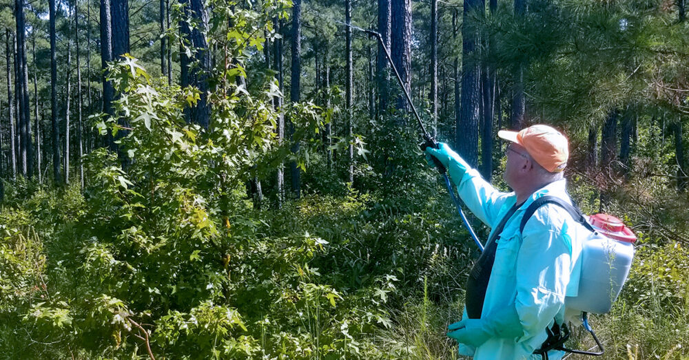 Pag-spray ng herbicide sa Big Woods Wildlife Management Area.