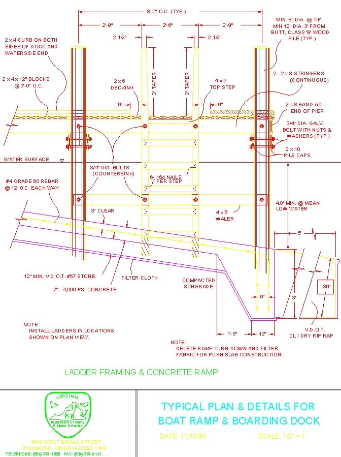 Pagbuo ng mga rampa ng bangka, kung ikaw ay gumagawa ng rampa para sa iyong pribadong paggamit, o sa kaso ng Department of Wildlife Resources (DWR), pampublikong paggamit, marami sa mga bagay na dapat isaalang-alang ay pareho. Ilan sa mga bagay na iyon ay ang pamantayan sa site, mga permit, disenyo, mga pamamaraan at materyales sa pagtatayo, at ang uri at sukat ng mga bangkang ilulunsad.