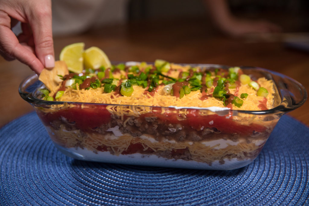 - Magpatuloy sa layer hanggang sa magamit ang lahat ng sangkap. Ihain nang mainit kasama ng tortilla chips.