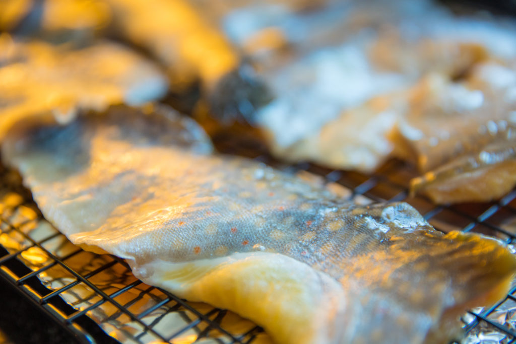 - Gupitin ang trout sa maliliit at manipis na hiwa. Pahiran ang mga hiwa ng karne sa harina, pagkatapos ay ang itlog, at ilagay sa kawali para sa pagprito.