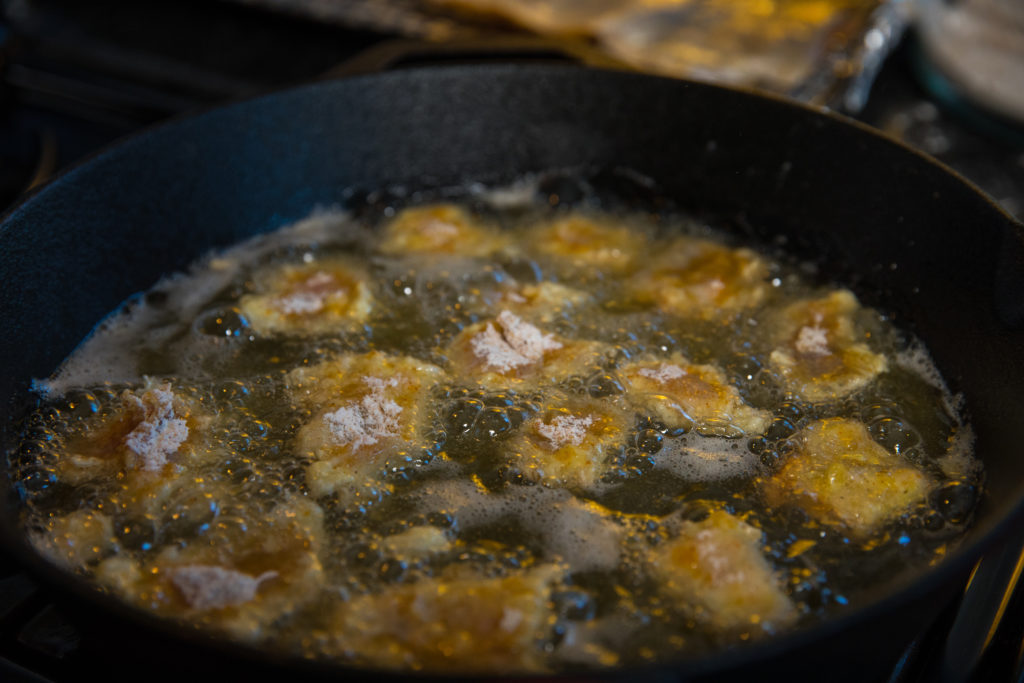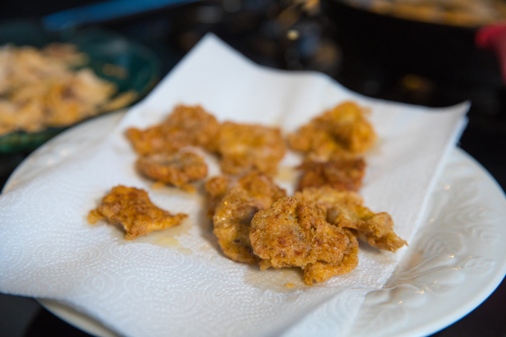 - Sa isang mangkok, paghaluin ang harina, panimpla ng Cajun, paminta, at mga breadcrumb. Sa isa pang mangkok, haluin ang itlog.