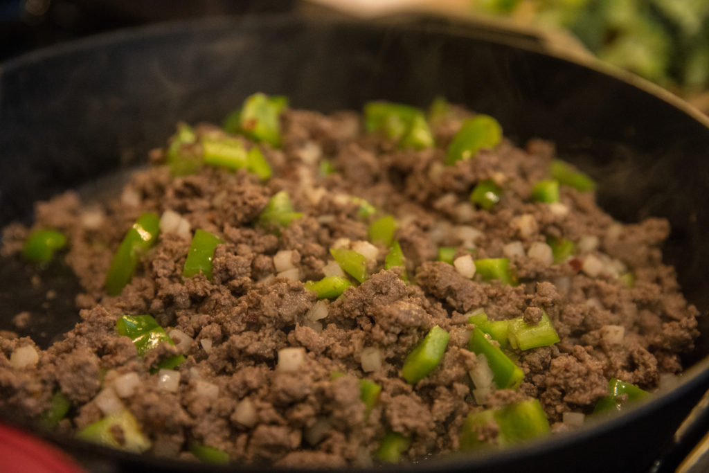 - Magdagdag ng bell peppers sa karne ng usa at pagsamahin.