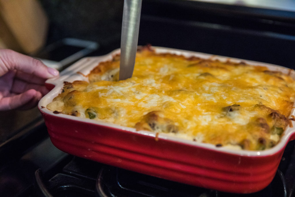 - Ilagay sa oven at lutuin ng 45 minuto. Ihain nang mainit-init upang balutin sa foil at ilagay sa refrigerator, at ilagay sa oven sa susunod na umaga upang magpainit at ihain para sa almusal.