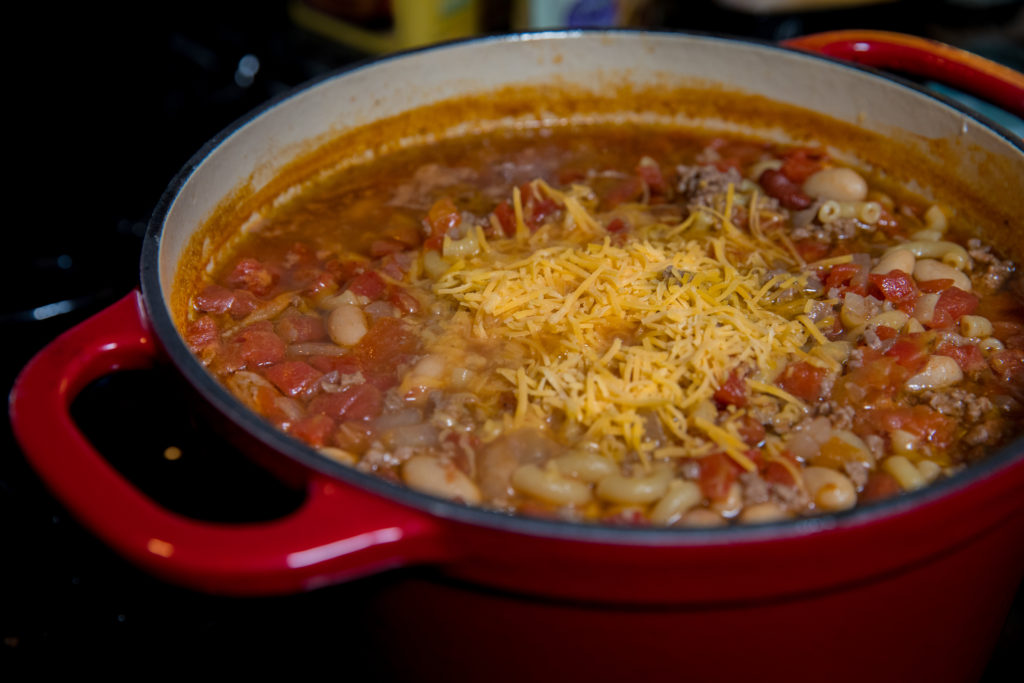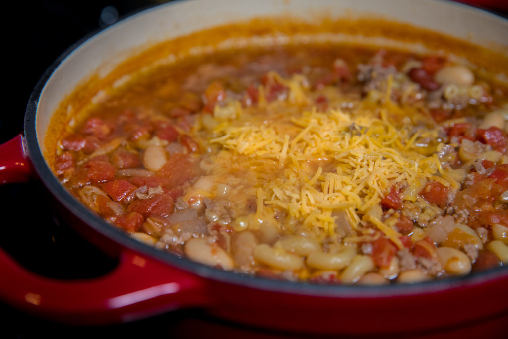Isa pang masaganang ulam na kumukuha ng aming mga paboritong sangkap para sa isang kasiya-siyang kumbinasyon sa isang malamig na gabi o para sa isang simpleng comfort dish kung gusto mong mamahinga sa paligid ng sala at kumain ng hapunan. Ang macaroni at keso ay nakikilala ang pagkaing ito mula sa tradisyonal na sili. Mahirap talunin ang isang mas kasiya-siyang kumbinasyon kaysa sa sili at macaroni at keso.