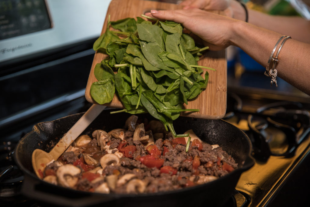 - Idagdag ang spinach at haluin hanggang sa pinagsama.