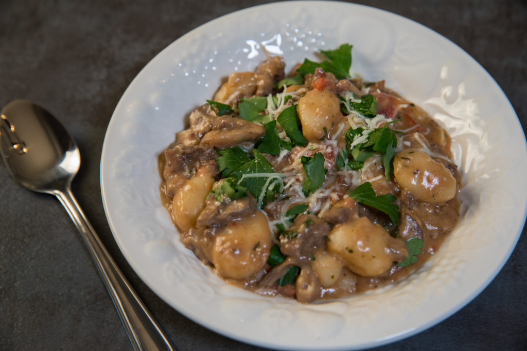 Ang tradisyonal na recipe ay nangangailangan ng Italian sausage, ngunit sa tuwing maaari kong palitan ang binili sa tindahan para sa ligaw na laro, ginagawa ko. Sa palagay ko ay wala nang mas masaya kaysa sa pagiging malikhain gamit ang ligaw na laro. Ito ay isang klasikong, Linggo ng gabi, comfort food, stick-to-your-ribs na uri ng recipe. Ang nagpapasarap dito ay ang sabaw ng manok na nilutong gnocchi at ang mga pampalasa at karne na kumukulo sa keso. Bar none, kung mahilig ka sa keso, ang recipe na ito ay para sa iyo. Dagdag pa, kung gusto mong mag-cut-out ng mga naprosesong carbs tulad ng pasta, ang gnocchi ay isang mahusay na alternatibo.