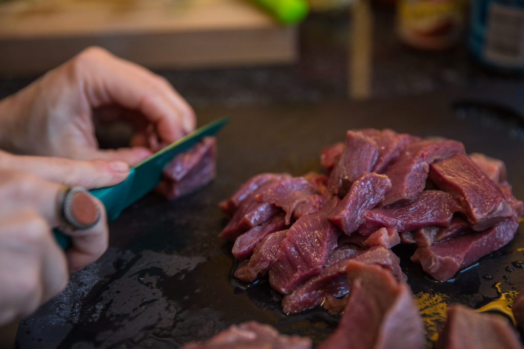 - Hiwain ang tenderloin ng karne ng usa at itabi.