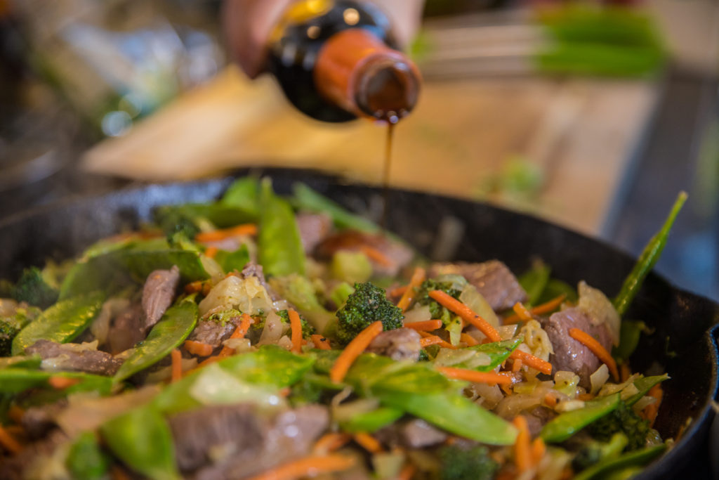 - Idagdag ang tenderloin sa kawali at ipagpatuloy ang paghagis ng mga sangkap hanggang sa maayos na pagsamahin sa medium-low heat. Magdagdag ng higit pang teriyaki, toyo at pampalasa sa iyong pagnanais.