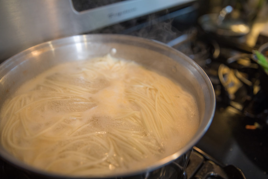 - Alisan ng tubig ang noodles at itabi.