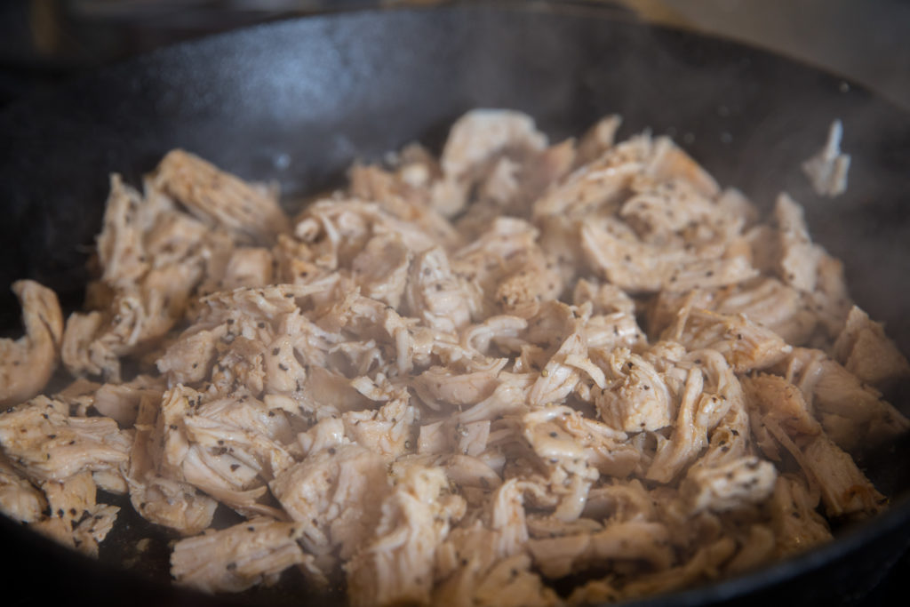 - Sa isang kawali na may mantikilya sa katamtamang init, lutuin ang pabo at gutayin kapag luto na. Alisin kapag tapos na.