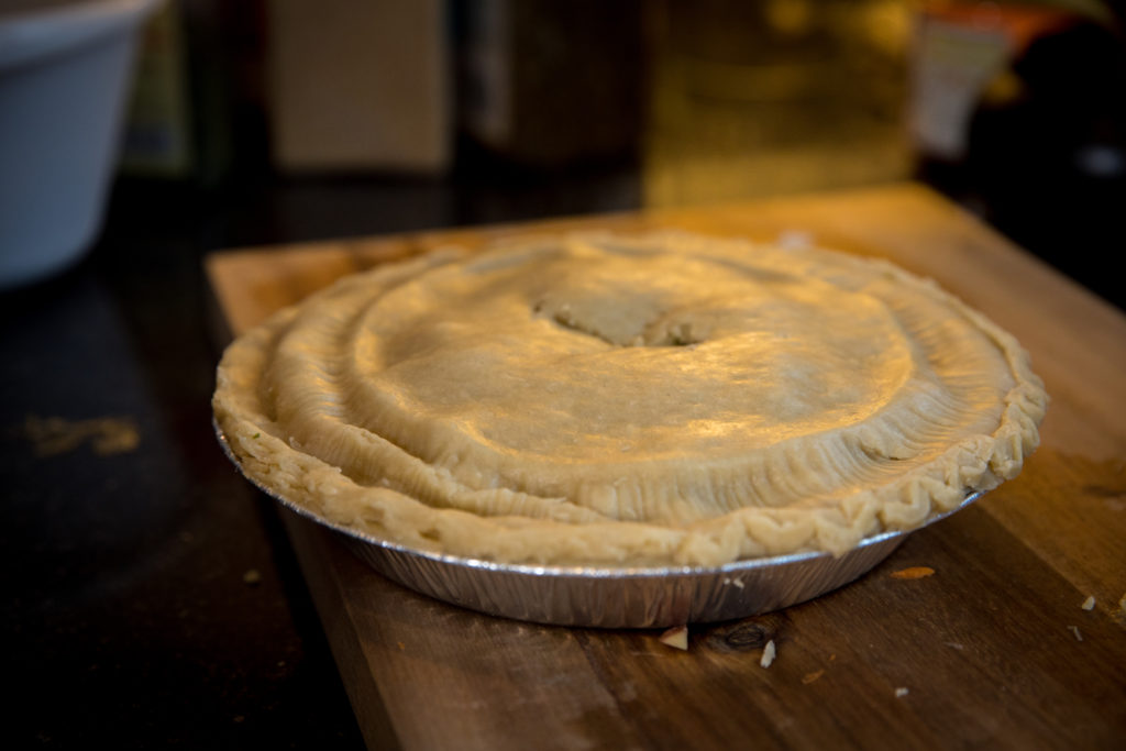 - Ilagay ang mga pie shell sa ilalim ng pie dish, at ibuhos ang timpla sa dish. Itaas ang iba pang shell ng pie, at maghiwa ng mga butas sa itaas sa gitna para sa bentilasyon habang nagluluto.