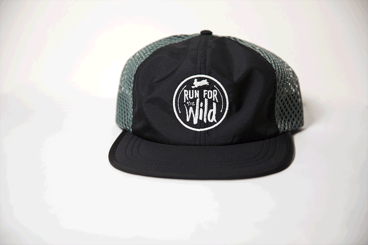 Ang Run for the Wild na graphic ay tinahi ng glow-in-the-dark na sinulid na umiilaw sa dilim. Ang running hat na ito ay isang sukat na may mabilis na adjust pack webbing backstrap. Kasama sa presyo ang pagpapadala at lahat ng nalikom ay napupunta sa aming mga hakbangin sa pagbibigay.