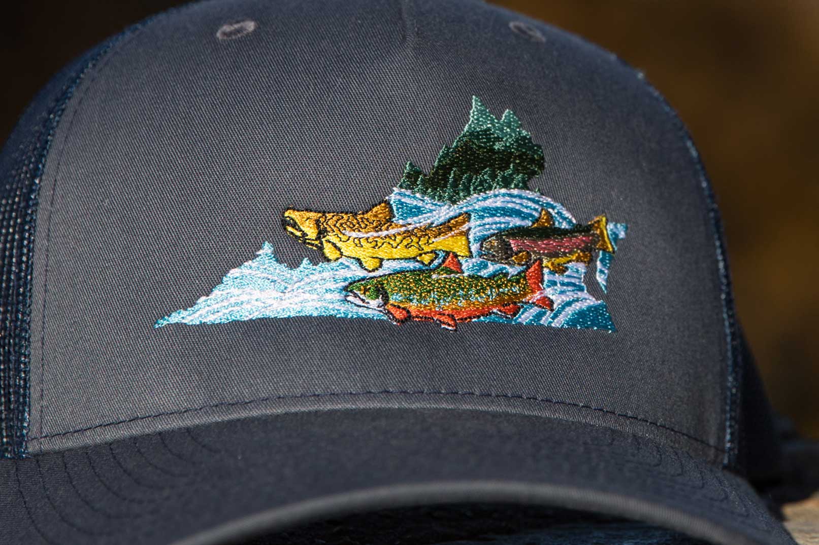 Aktibo ka man na hinahabol ang aming Trout Slam Challenge, o mahilig lang sa pangingisda para sa mga rainbows, browns at brookies; buong kapurihan na ipakita ang iyong pagpapahalaga para sa trout ng Virginia gamit ang aming custom made na Trout Slam na sumbrero. Ang sumbrero na ito ay lokal na ginawa ng Crewel & Unusual at nagtatampok ng orihinal na likhang sining ng Virginia artist na si Ron Shearer.