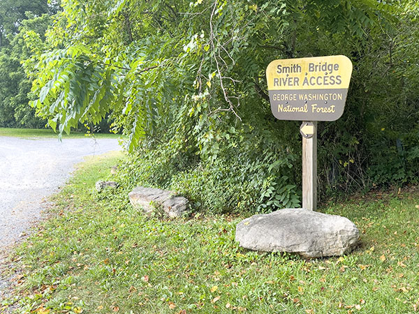 Mula sa Covington, dumiretso sa hilaga sa US-220/Hot Springs Rd, lumiko pakaliwa sa VA-687/Jackson River Rd, lumiko pakanan sa SR-721/N Smith Bridge Rd, lumiko pakanan sa S Smith Bridge Rd, at sundan ito sa parking area.