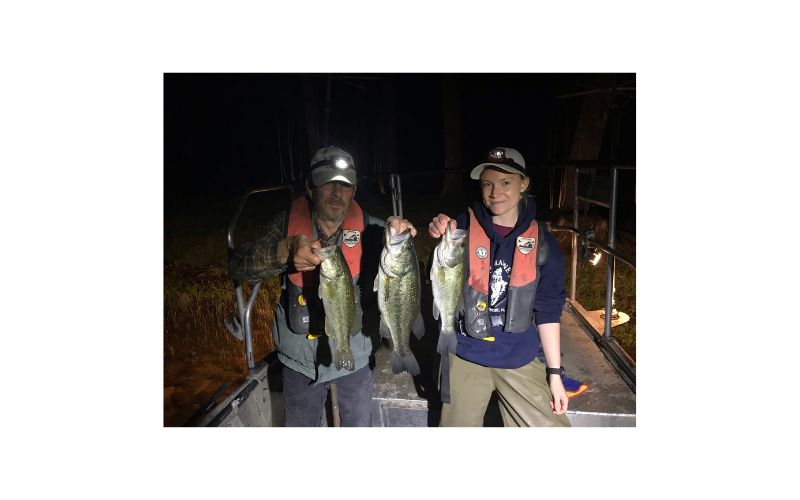 Ang populasyon ng largemouth bass ay nanatiling pare-pareho sa nakalipas na ilang taon. Sa kasaysayan, ang Lake Arrowhead ay may mataas na density ng maliit na bass. Ang mga densidad ng bass ay naka-streamline at ang bilang ng mga isda na higit sa 12 pulgada ay napabuti nang malaki. Ang largemouth bass ay mabagal na lumalaki sa Lake Arrowhead na may mga isda na hindi umaabot sa 11-12 pulgada hanggang sa edad na 4. Sa mga mabagal na rate ng paglago, ang mga mangingisda ay kailangang mag-ani ng ilang bass na mas mababa sa 11 pulgada upang makabuo ng mas malaking largemouth. Ang mga mangingisda ay dapat tumuon sa mga nahulog na puno, mga lodge ng beaver, mga istraktura ng tirahan ng isda, at ang mga gilid ng mga kama ng damo kapag nagta-target sa bass. Ang Lake Arrowhead ay maaaring maging malinaw kaya ang mga mangingisda ay dapat gumamit ng mga bait / taktika upang tumugma sa mga kondisyon.