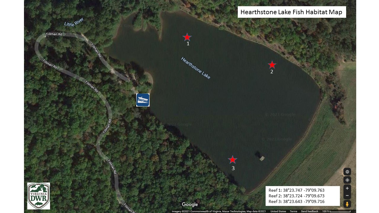 Ang Hearthstone Lake ay isang 7-acre impoundment sa George Washington at Jefferson National Forests sa hilaga ng Stokesville. Ang Hearthstone ay pinamamahalaan para sa mainit-init at malamig na tubig na mga pagkakataon sa pamimingwit. Sa taglagas ng 2020, ang lawa ay muling napuno pagkatapos makumpleto ang malawakang pag-aayos ng dam. Ipinagpatuloy ang pag-stock ng trout noong Oktubre 2020. Sa kasamaang palad, inalis ng drawdown ang mga populasyon ng isda sa mainit na tubig sport sa loob ng lawa. Ang mga biologist ay kasalukuyang gumagawa ng plano para mag-restock, ngunit ang mga mangingisda ay kailangang maging matiyaga habang ang mga populasyon ay gumaling.