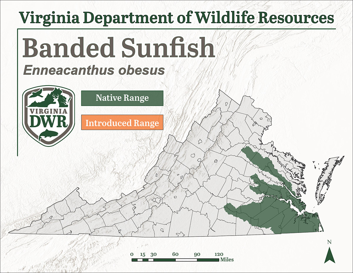 Ang Banded Sunfish ay katutubong sa coastal plain ng timog-silangang Virginia. Nangyayari ang mga ito sa loob ng York, James, at Chowan watershed.