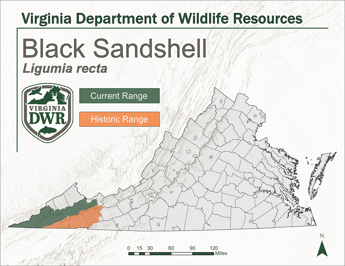 Ang mga freshwater mussels ay nangangailangan ng mga host ng isda upang makumpleto ang kanilang natatanging lifecycle. Ang larva ay dapat mahuli ang isang pagsakay sa mga gills ng hindi pinaghihinalaang isda, na namamahagi sa kanila malayo sa kanilang ina. Ang host ng Black Sandshell ay ang Walleye, isang tanyag na species ng laro na gumagana ang DWR upang mag-stock sa mga sapa sa buong estado. Ang mga mangingisda ng Walleye ay alam na ang partikular na isda na ito ay kumakain ng maliliit na minnows sa maagang umaga at huli na oras ng gabi.