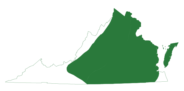 Pangunahing matatagpuan sa mabuhangin na mga lupa ng Coastal Plain na may mga nakakalat na tala sa Piedmont at Blue Ridge Mountains.
