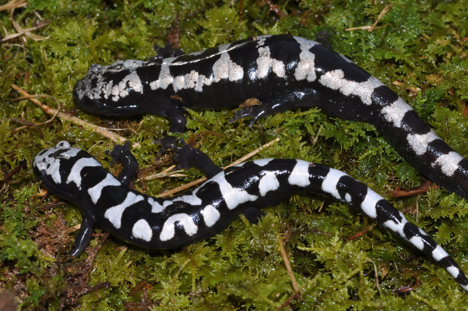 Lalaki (ibaba) at babae (itaas) Marbled Salamander. © Paul Sattler