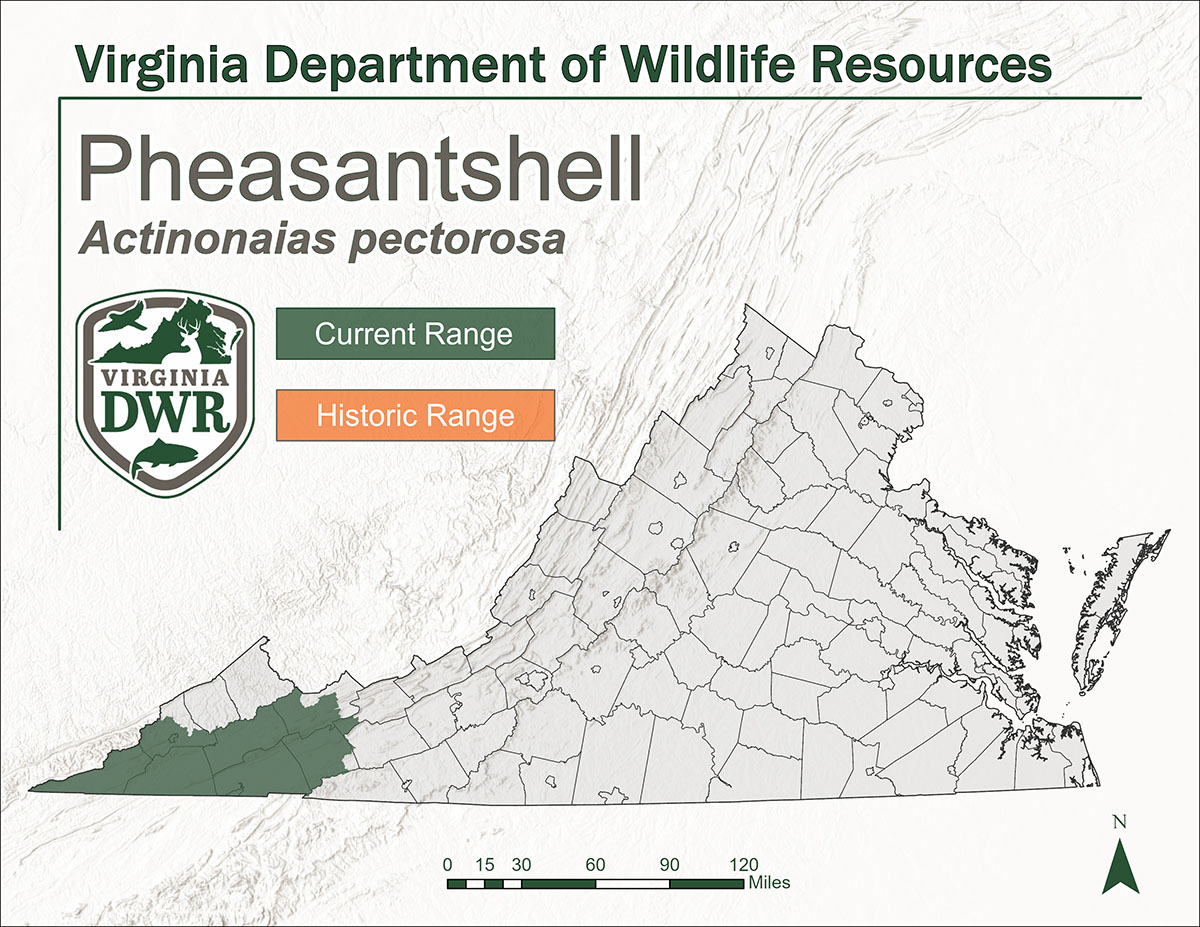 Ang Pheasantshell ay nangyayari sa buong upper Tennessee River basin sa timog-kanlurang Virginia.