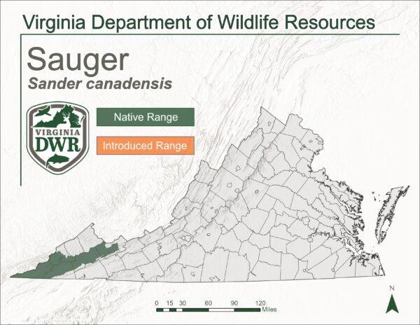 Sa loob ng Virginia, si Sauger ay katutubong sa Powell at Clinch Rivers ng Upper Tennessee River Basin.