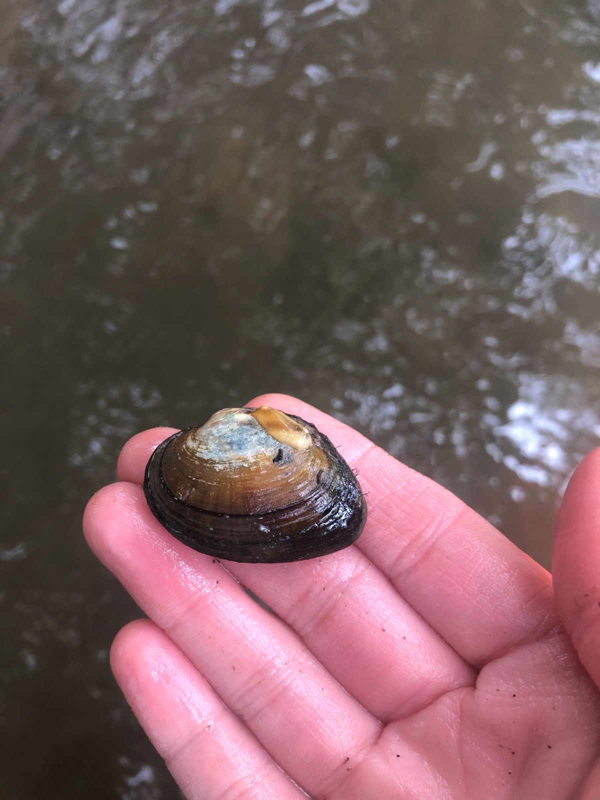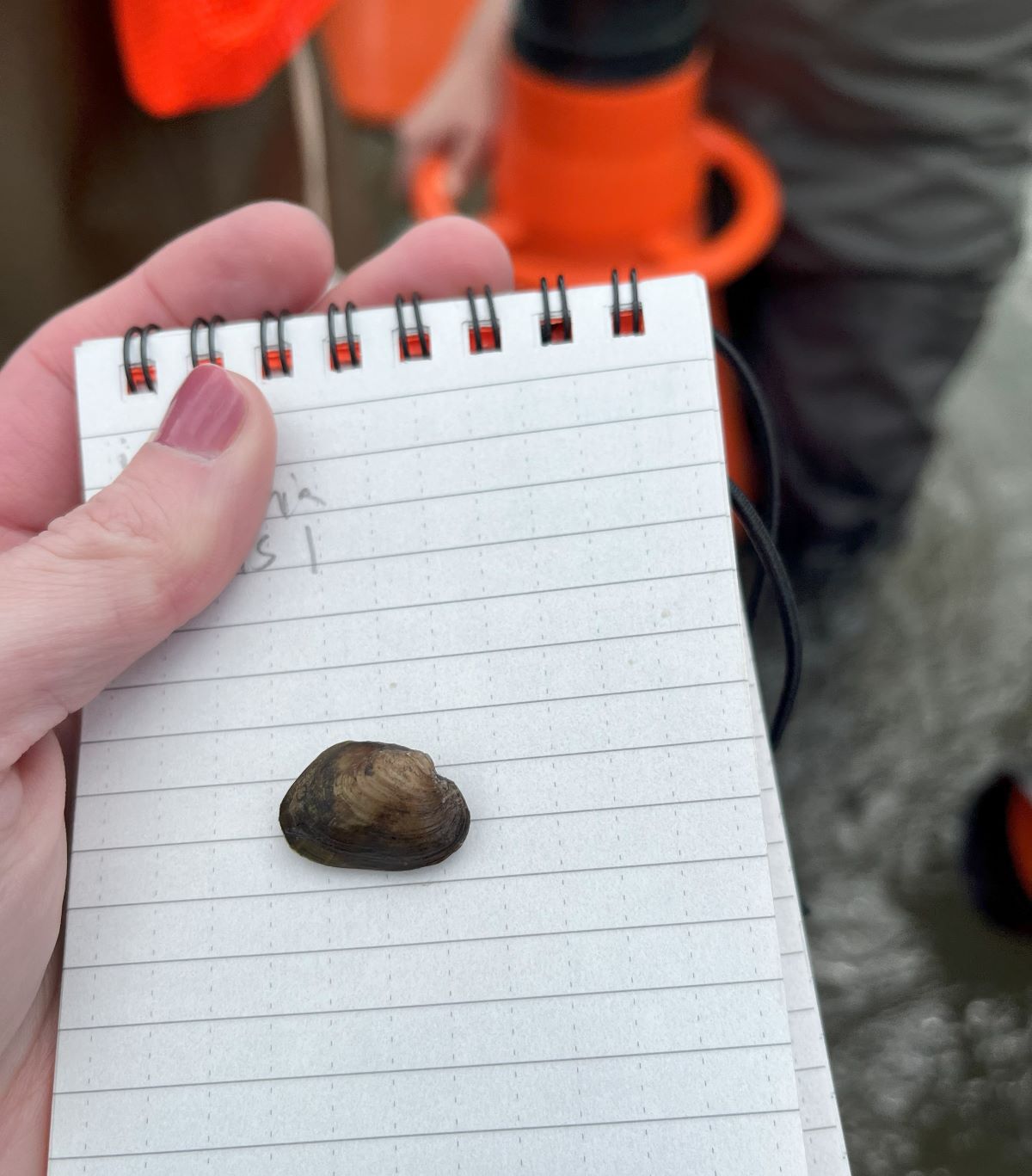 Isang Subadult Slippershell Mussel na nakolekta sa isang survey.