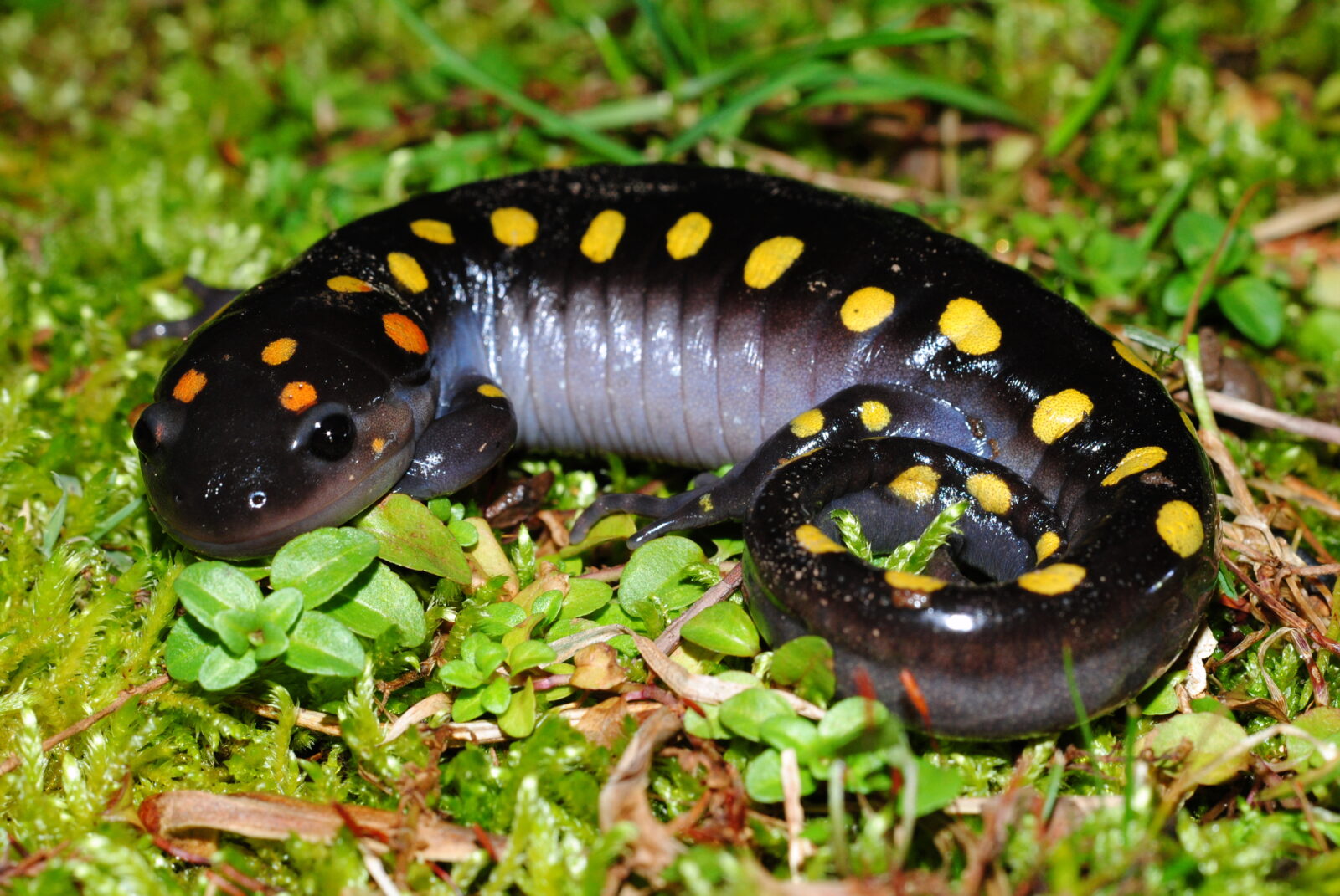 Ang batik-batik na salamander na kilala rin bilang yellow-spotted salamander ay miyembro ng mole salamander family na endemic sa North America; Nakukuha ng mga salamander na ito ang kanilang pangalan ng pamilya mula sa kanilang mga pag-uugali sa pag-uukit habang ginugugol nila ang karamihan ng kanilang buhay sa ilalim ng lupa. Ang tanging pagkakataon na makikita mo sila sa tubig ay sa panahon ng kanilang juvenile stage at kapag bumalik sila sa pag-breed. Karaniwang matatagpuan ang mga ito sa mga mature deciduous na kagubatan na may pana-panahong ephemeral vernal pool kung saan maaari silang magparami; ang seasonality ng mga pond na ito ay mas mainam dahil nililimitahan nito ang predation mula sa isda habang naglalaman ng sapat na tubig para sa larvae na maging mature; Sa pangkalahatan, mas gusto ang malalaking pool para sa mga batik-batik na salamander dahil mas maraming itlog ang inilalagay sa mga ito at ang larvae ay may mas mataas na rate ng kaligtasan ng buhay at mas mataas na konsentrasyon ng mga dahon ng litter ay mas gusto din dahil bilang larvae ang batik-batik na salamander ay madalas na matatagpuan sa mga kanlungan sa loob ng mga halaman sa ilalim ng mga dahon ng basura malapit sa kung saan sila inilagay upang itago mula sa arboreal predator.