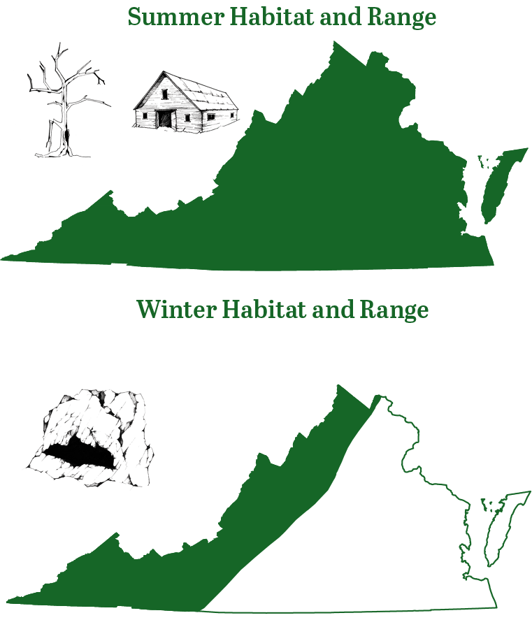Ang tri-colored bat ay matatagpuan sa buong estado sa mas maiinit na buwan, ngunit hibernate sa mga kuweba at rock shelter sa mga bundok sa panahon ng taglamig.