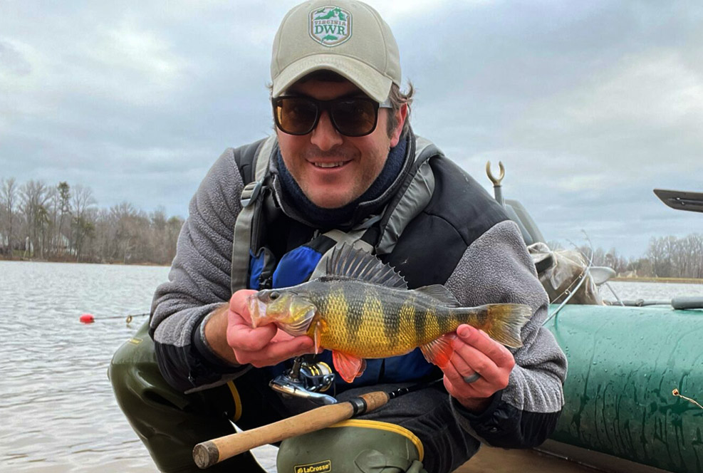 Ang Virginia DWR Aquatic Education Coordinator, si Alex McCrickard, ay nagpapakita ng isang Yellow Perch.