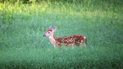 Ang mga fawn, na ipinanganak mula Abril hanggang Hulyo, ay sadyang iniwan nang mag-isa ng kanilang mga ina. Ang mga babaeng usa, na tinatawag na does, ay lumayo sa mga fawn upang maiwasan ang pag-akay sa mga mandaragit tulad ng mga aso o coyote sa kanilang lokasyon. Ang puting batik-batik na amerikana ay nagkukubli ng isang fawn habang hindi ito gumagalaw sa mga halaman. Ang mga batang fawn ay "nagtatago" at hindi susubukan na tumakas kapag nilapitan sila.